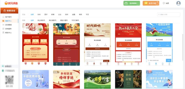 注册登录后,系统会自动跳转至活动后台,点击【模板中心】,选择模板样式。
