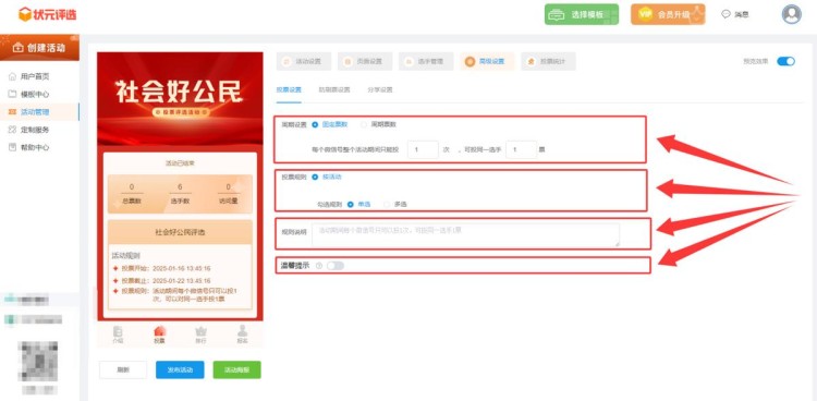 在【高级设置】中,完成投票规则的设置。