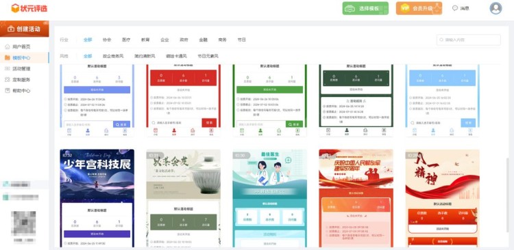 其次,注册登录后,系统会自动跳转至活动后台,在【模板中心】,选择合适的模板样式。