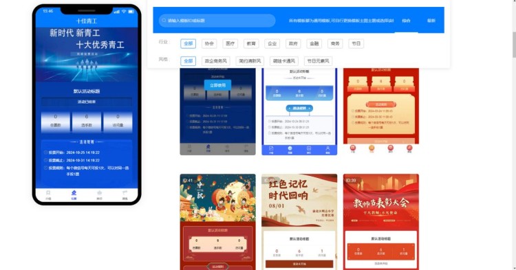 完成账号的注册登录后,系统会自动跳转至活动后台,点击【模板中心】,可以看到各式各样的模板,根据活动性质或者自己的喜好,选择合适的模板样式。