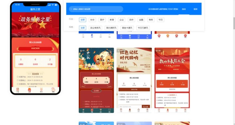 第二步,注册登录后,系统会自动跳转至活动后台,点击【模板中心】,选择合适的模板样式。