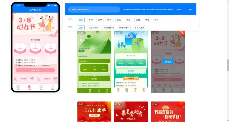 第二步,注册登录后,系统会自动跳转至活动后台,在【模板中心】,可以看到丰富的模板样式,选择合适的一键套用。