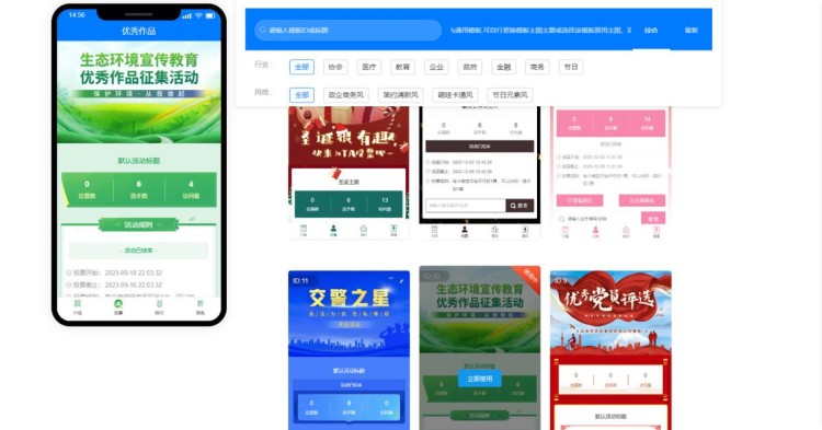 其次,登录后,系统会自动跳转至活动后台,在【模板中心】,选择与活动主题相契合的模板样式。