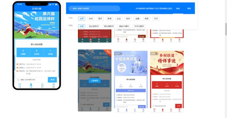 完成账号的注册登录操作后,系统会自动跳转至活动后台,点击【模板中心】,可以根据活动性质或者您的喜好,选择合适的模板样式。