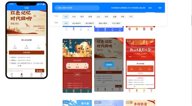 登录后,系统会自动跳转至活动后台,在【模板中心】,选择合适的模板样式,如知识产权十大事件、创业之星等。