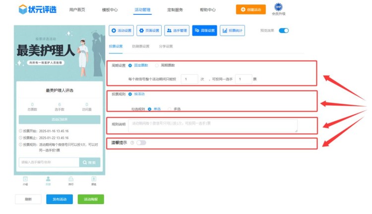 在【高级设置】中,设置投票规则。