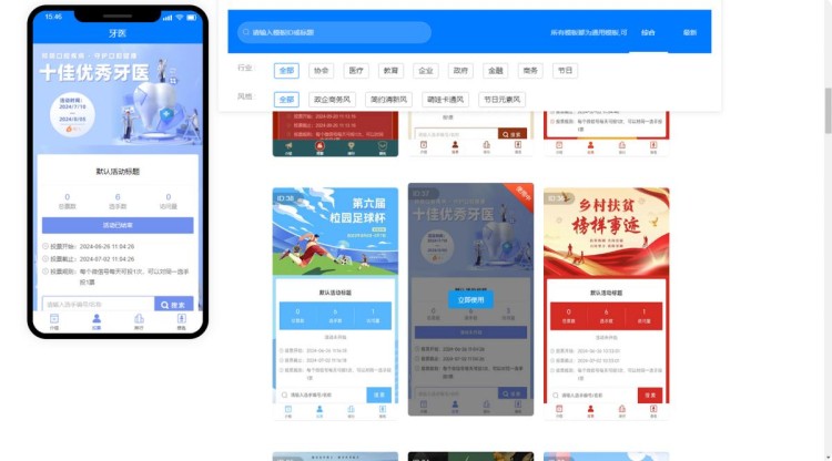 注册成功后,系统会自动跳转至活动后台,点击【模板中心】,选择合适的模板样式一键套用。