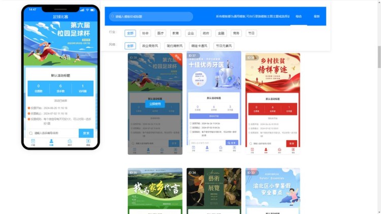 第二步,登录后,系统会自动跳转至活动后台。点击【模板中心】,选择合适的模板样式。