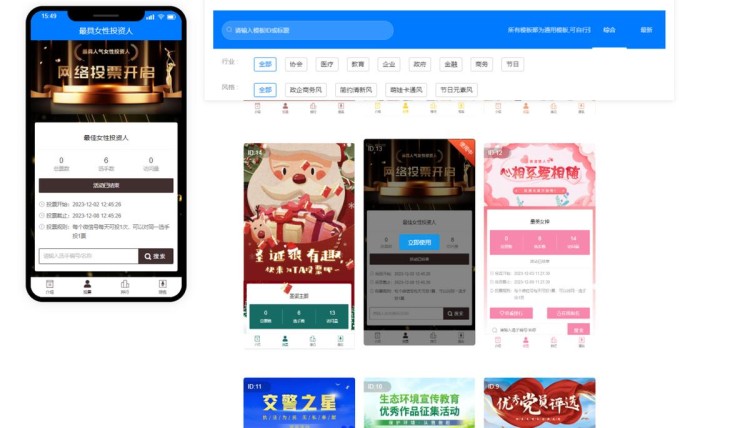 第二步,登录后,系统会自动跳转至活动后台。点击【模板中心】,选择模板后一键套用。