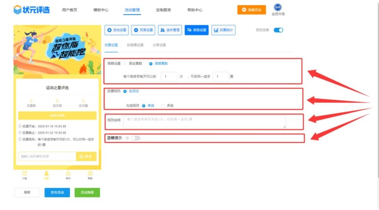 第六步,在【高级设置】中,设置投票规则。