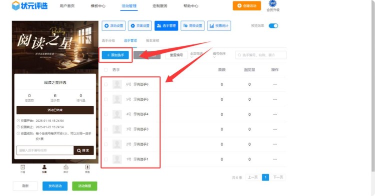 第五步,来到【选手管理】部分,将每位选手的个人资料逐一上传,包括选手的名称、简介、照片或者视频等。这些资料能够让参与者更好地了解每位选手,为他们的投票决策提供参考。
