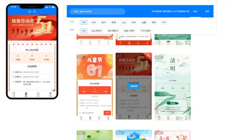第二步,登录后,系统会自动跳转至活动后台。在【模板中心】,选择合适的模板样式,如创业之星、交警之星等。