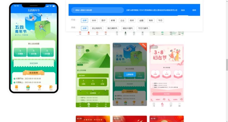 第二步,登录后,系统会自动跳转至活动后台。在【模板中心】,可以选择合适的模板样式,如知识产权十大事件、创业之星等。