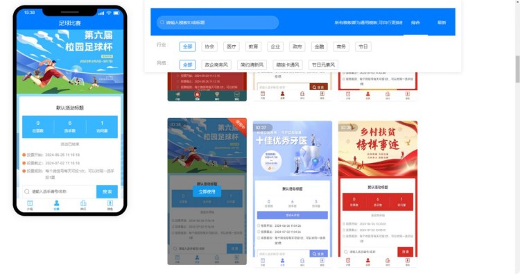 第二步,完成账号的注册登录操作后,系统会自动跳转至活动后台。在【模板中心】,选择合适的模板后一键套用。