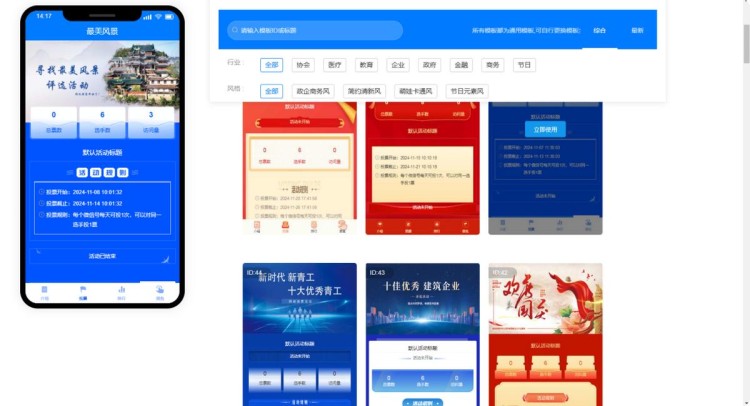 第二步,成功登录后,系统会自动跳转至活动后台。在【模板中心】,选择合适的模板样式,如知识产权十大事件、创业之星等。