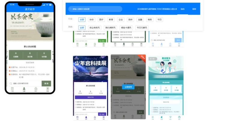 完成账号的注册登录操作后,系统会自动跳转至活动后台。在【模板中心】,选择合适的模板样式,如知识产权十大事件、创业之星等。