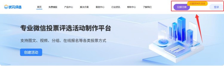 首先,在百度中搜索状元评选,进入平台首页后,右上角点击【注册】按钮,输入手机号、验证码等信息,注册账号。老用户直接登录。