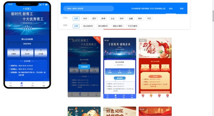 其次,登录后,系统会自动跳转至活动后台。在【模板中心】,选择合适的模板样式。