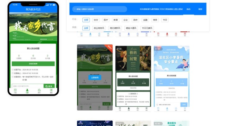第二步,登录后,系统会自动跳转至活动后台。在【模板中心】中,选定与主题相契合的模板样式后,可一键套用。