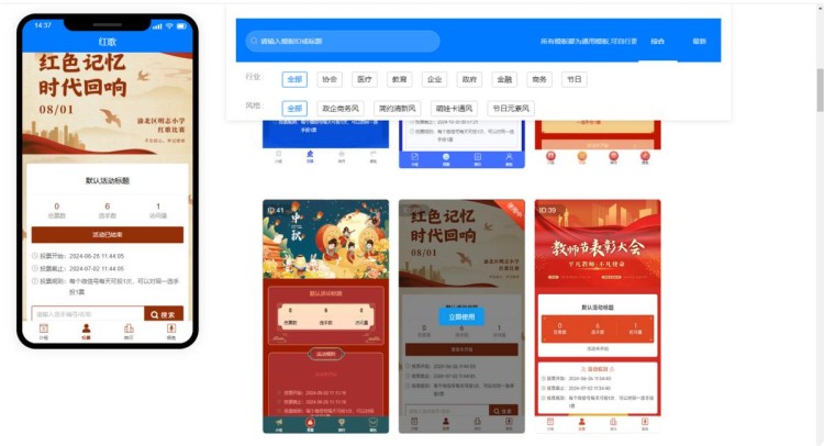 第二步,登录后,系统会自动跳转至活动后台。在【模板中心】,选择合适的模板样式,如知识产权十大事件、创业之星等。