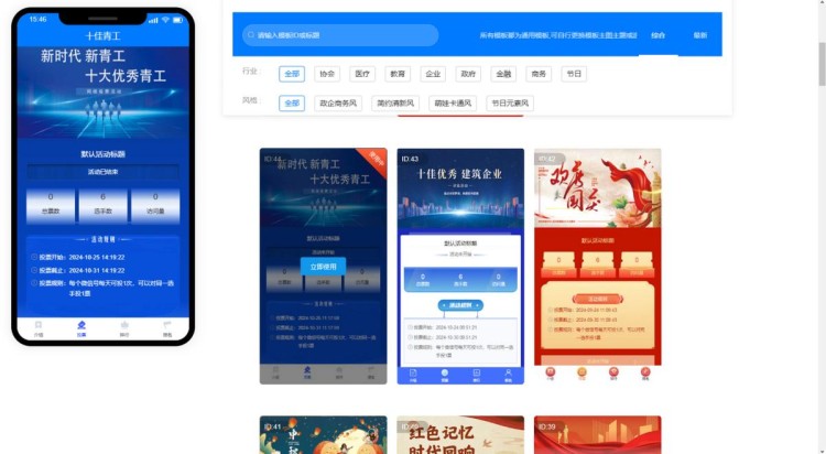 第二步,完成账号的注册登录操作后,系统会自动跳转至活动后台。在【模板中心】,选定模板后可一键套用。