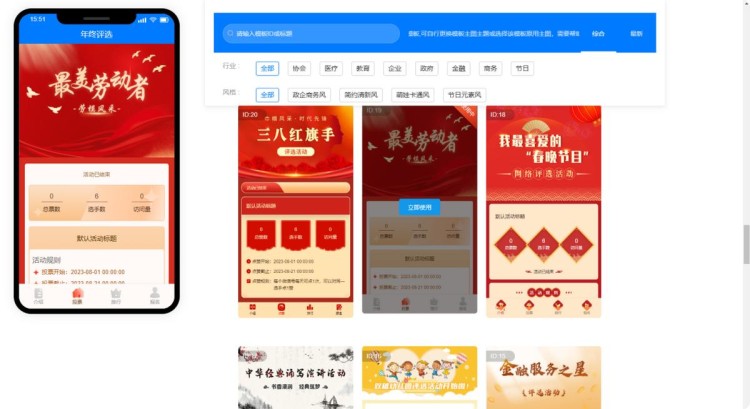 第二步,注册登录后,系统会自动跳转至活动后台。在【模板中心】,有着各种各样的模板,可以选择与主题相关的一键套用。
