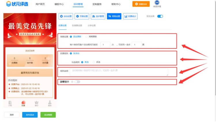 怎么创建最美党员先锋网络投票评选活动?简单几步教会您