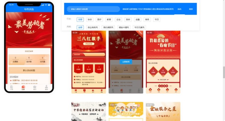 第二步,登录后,系统会自动跳转至活动后台。【模板中心】可以看到各式各样的模板,涵盖多种风格,选定合适的可直接套用。