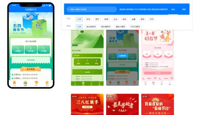 第二步,登录后,系统会自动跳转至活动后台。在【模板中心】,选定合适的一键套用。