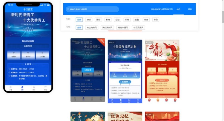 第二步,成功登录后,系统会自动跳转至活动后台。点击【模板中心】,可以看到各式各样的模板,选择合适的可一键套用。