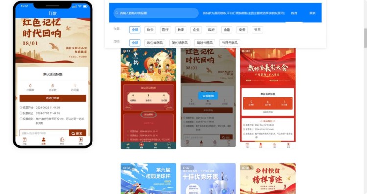 第二步,登录后,系统会自动跳转至活动后台。在【模板中心】,选定合适的模板样式后可一键套用。