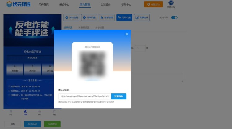 最后,点击【发布活动】,系统会自动生成投票链接和二维码。这样一场网络投票活动就制作完成了,是不是很简单?