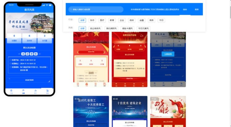 第二步,完成账号的注册登录操作后,系统会自动跳转至活动后台。在【模板中心】,选定合适的模板可一键套用。