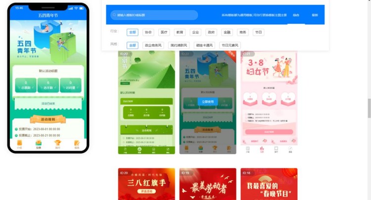 第二步,成功登录后,系统会自动跳转至活动后台。【模板中心】选定模板即可一键套用,开始创建投票评选活动。