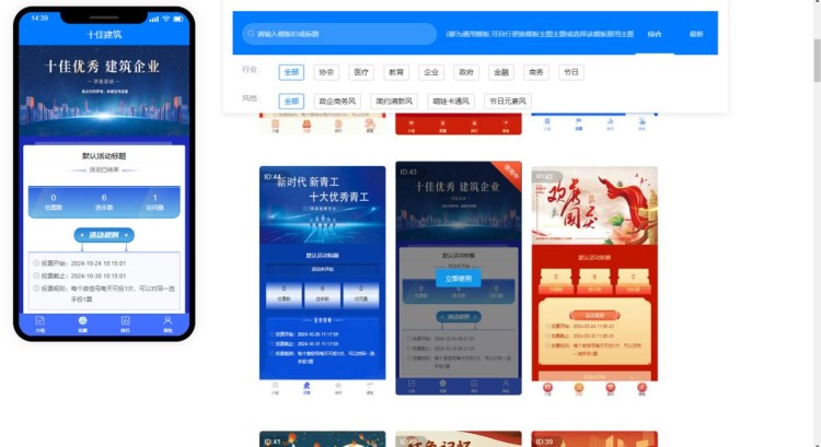 第二步,成功登录后,系统会自动跳转至活动后台。在【模板中心】,可挑选适配的模板类型,如教师表彰大会、十佳优秀牙医、乡村扶贫榜样事件等模板均可选择。