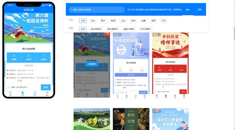 第二步,成功登录后,系统会自动跳转至活动后台。在【模板中心】,选择与主题相契合的模板,如我为家乡代言、少年宫美术展、以茶会友等模板。