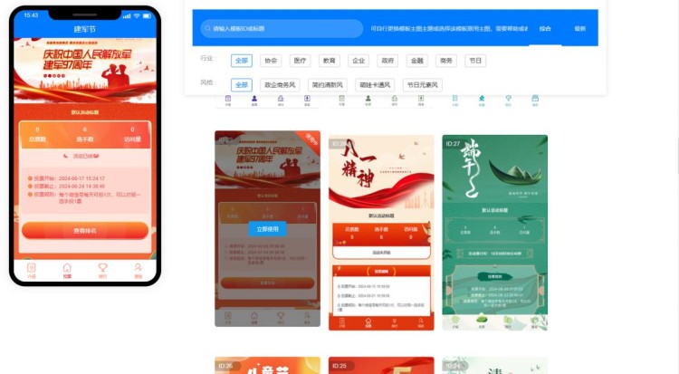 第二步,成功登录后,系统会自动跳转至活动后台。点击【模板中心】,选择合适的模板样式。