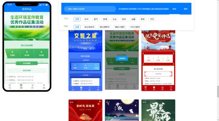 其次,登录后,系统会自动跳转至活动后台。点击【模板中心】,选定合适的模板后可一键套用。