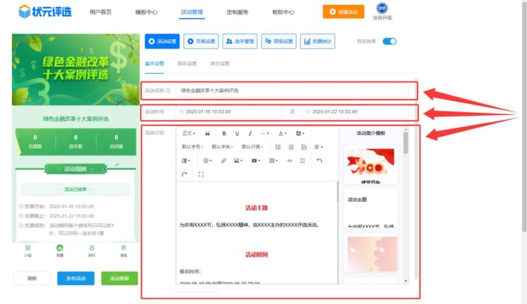 再者,在【活动设置】中,编辑活动信息,包括活动名称、简介、照片或者视频等。