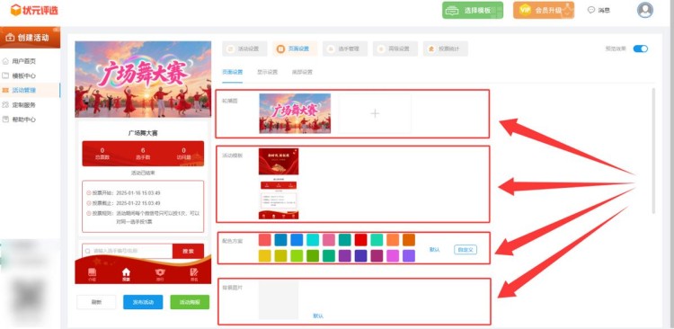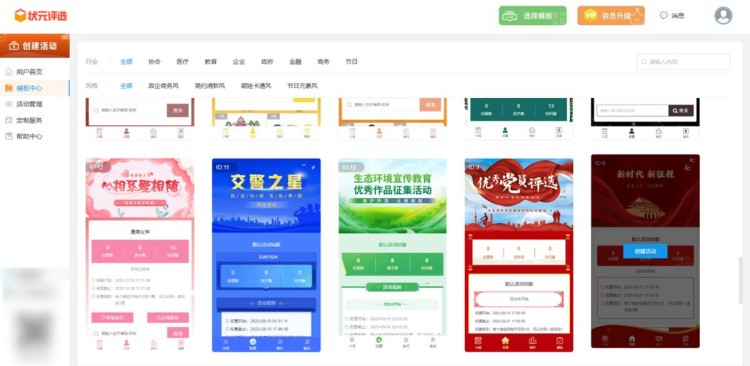 第二步,成功登录后,系统会自动跳转至活动后台。在【模板中心】,选择与主题相契合的模板样式,选定后可直接一键套用。