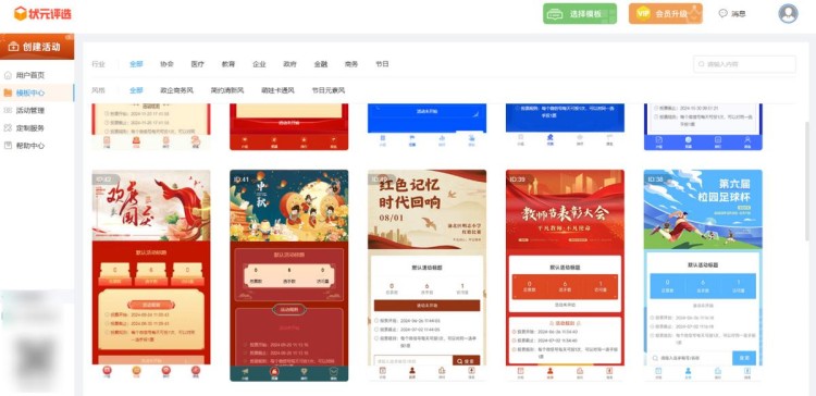 其次,登录后,系统会自动跳转至活动后台。在【模板中心】,选定合适的模板样式后可一键套用。