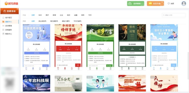 第二步,成功登录后,系统会自动跳转至活动后台。在【模板中心】,选定后可直接一键套用。