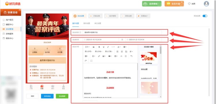 最美青年警察在线投票评选活动怎么创建?小白必看版
