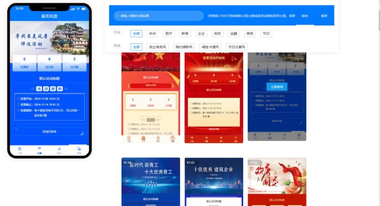 第二步,登录后,系统会自动跳转至活动后台。点击【模板中心】,选定模板后可直接一键套用。