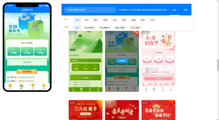 第二步,登录后,系统会自动跳转至活动后台。在【模板中心】,可以选择与主题相契合的模板样式。
