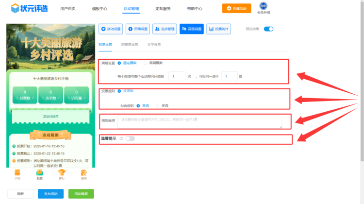 十大美丽旅游乡村网络投票评选活动怎么创建?简单几步教会您