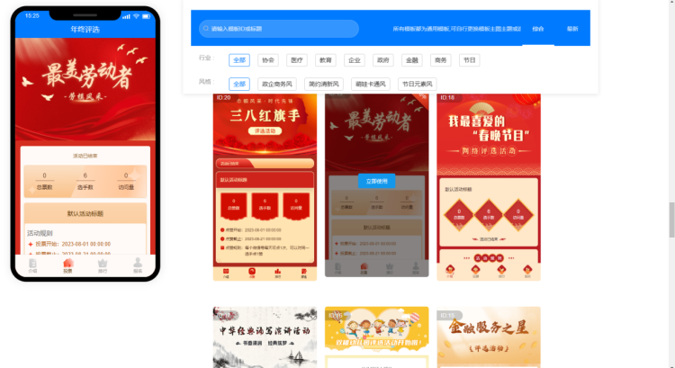 其次,成功登录后,系统会自动跳转至活动后台。在【模板中心】,选定合适的模板后可直接一键套用。