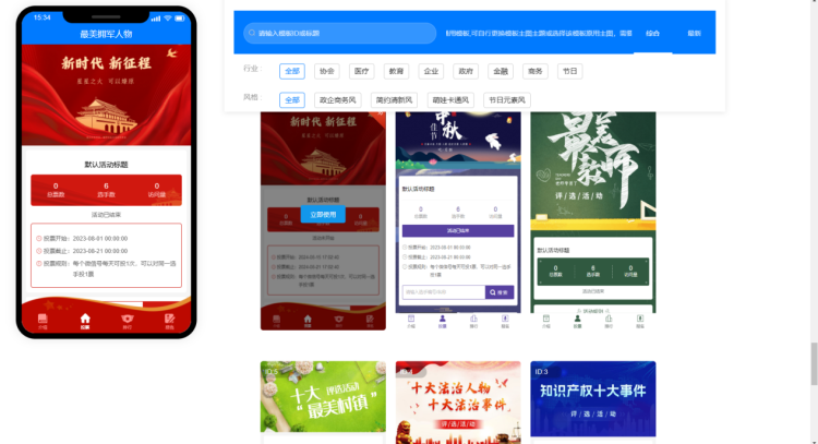 第二步,成功登录后,系统会自动跳转至活动后台。在【模板中心】,选定与主题相契合的模板后可直接一键套用。