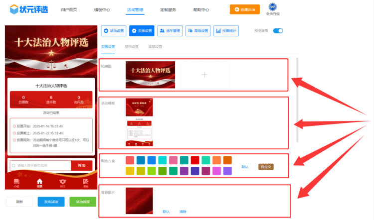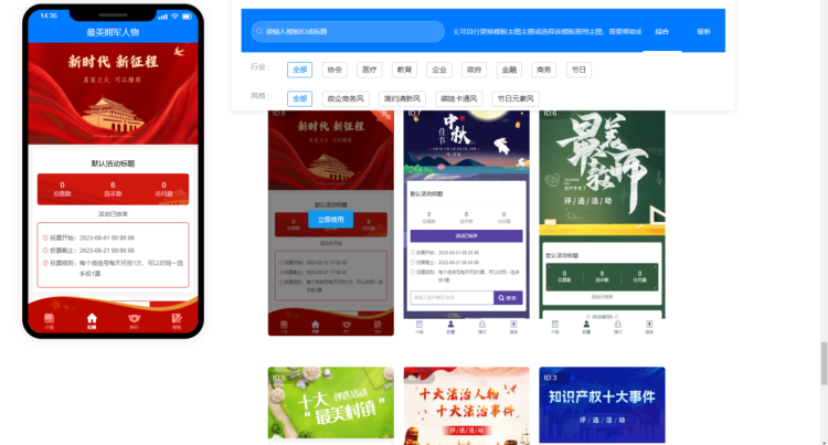 第二步,成功登录后,系统会自动跳转至活动后台。在【模板中心】,选择与主题相契合的模板样式,如知识产权十大事件、创业之星等。