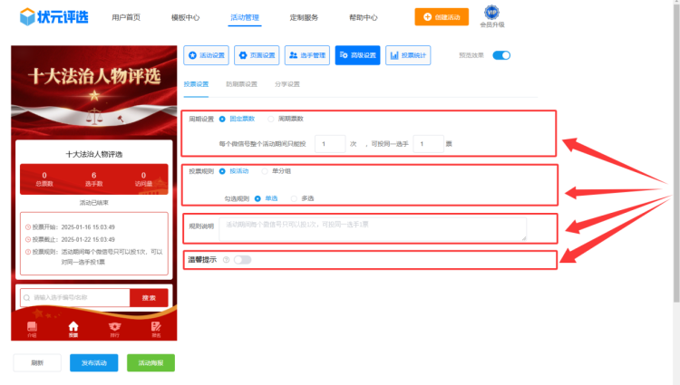第六步,在【高级设置】中,设置投票规则。
